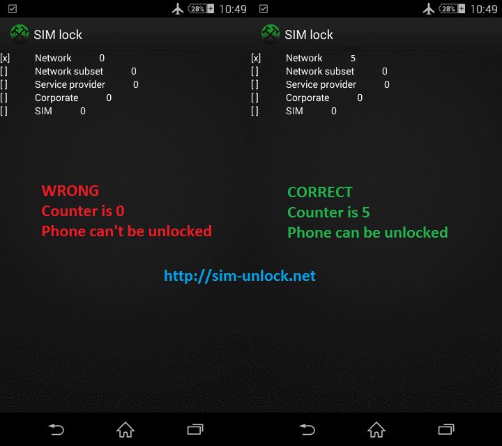 6. If X is on NETWORK, SUBSET or PROVIDER and value is more than 0, you can unlock your phone.